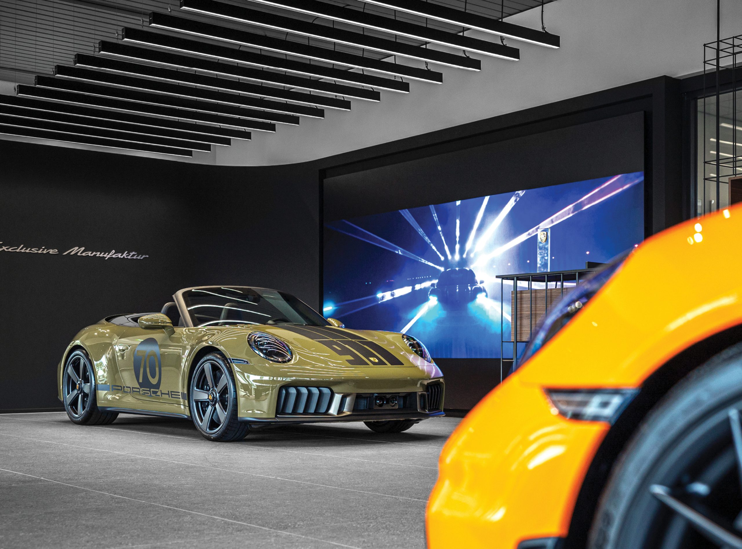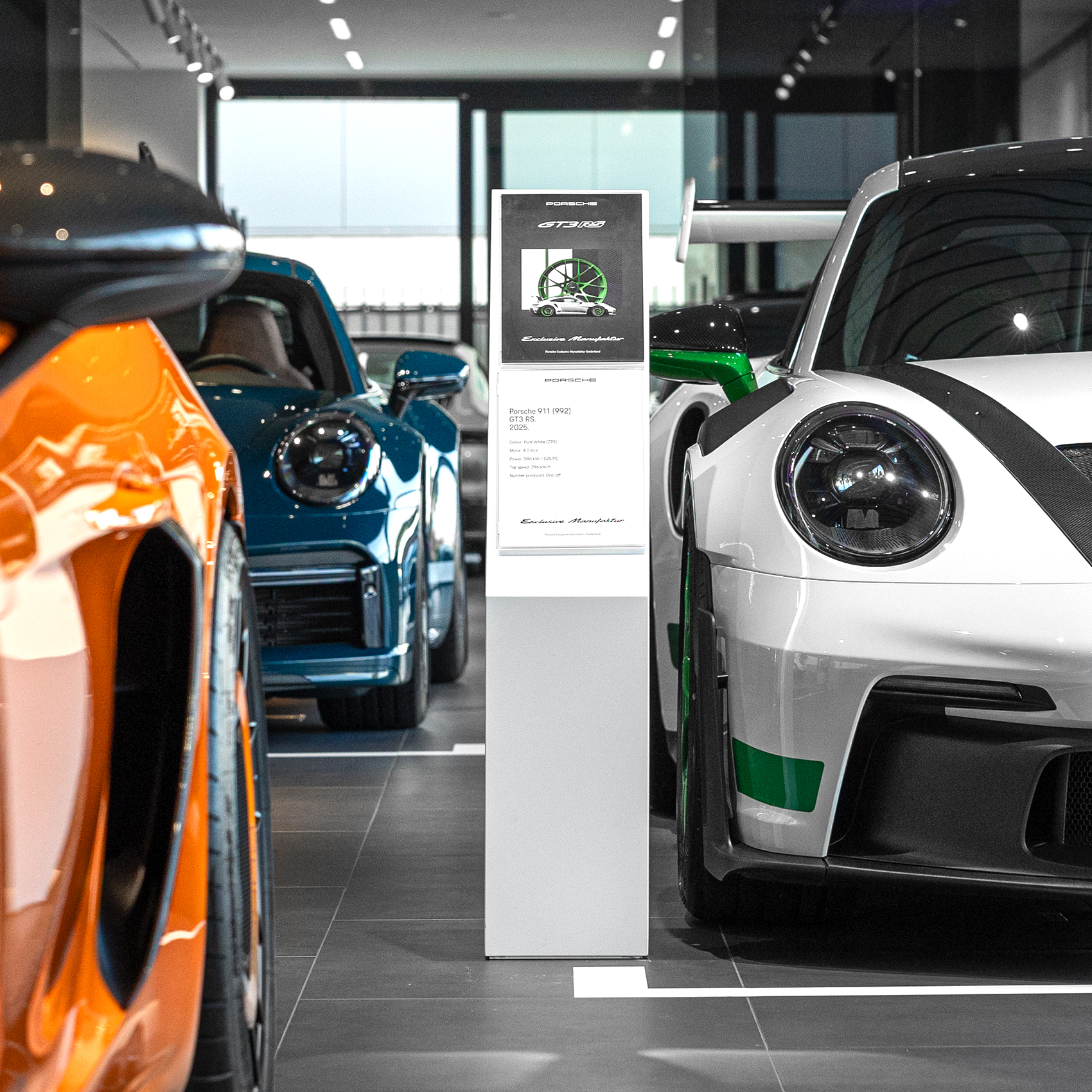 Designed by AGH & Friends to elevate the customer journey, the space offers more than just a look at the final product. A carefully curated selection of highly individualised vehicles is on display, reflecting the exclusivity and personality behind each Porsche.